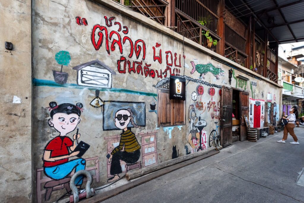Rong Kueak Shrine Alley is a narrow lane that leads to a 130-year-old Chinese shrine on the banks of the Chao Phraya. The shrine is one of the oldest and most authentic architectural treasures in the area. Two walls stand alongside Rong Kueak Shrine Alley, which leads up to the shrine. On one side, you’ll see an abundance of colorful graffiti and street art. On the other side, there is a collection of award-winning photographs of the neighborhood on display.