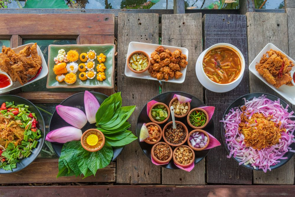 Try Mon cuisine: One of the most well-known Mon dishes is Khao Chae, a summertime delicacy made of cooked rice soaked in jasmine-infused water and served with a variety of condiments, including caramelized fish, peppers stuffed with pork and shrimp fillings, and deep-fried aromatic “Kapi” balls made from shrimp paste mixed with various herbs.