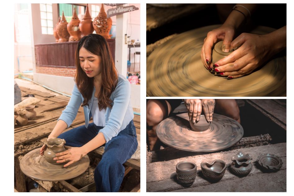 Experiment with clay pottery: Clay pottery has been a specialized craft of the Mon people for centuries and is considered a regarded craft of Nonthaburi province. Visitors at Pa Tum Pottery Factory pay 50 Baht for a piece of clay, learn how to make a pot or a vase on the spot, and take it home with them.