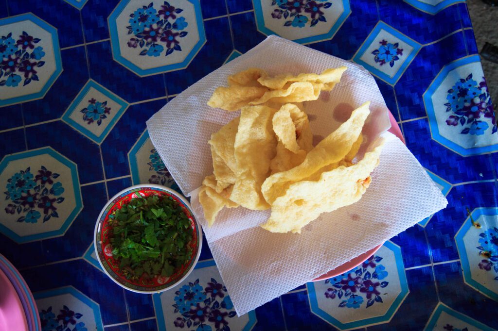 Food is another reason to pause here. Tha Chalom is known for its fried fish dumplings, made with fresh local fish and cooked over high heat until crisp. Simple and satisfying, they reflect the village’s close connection to the sea.