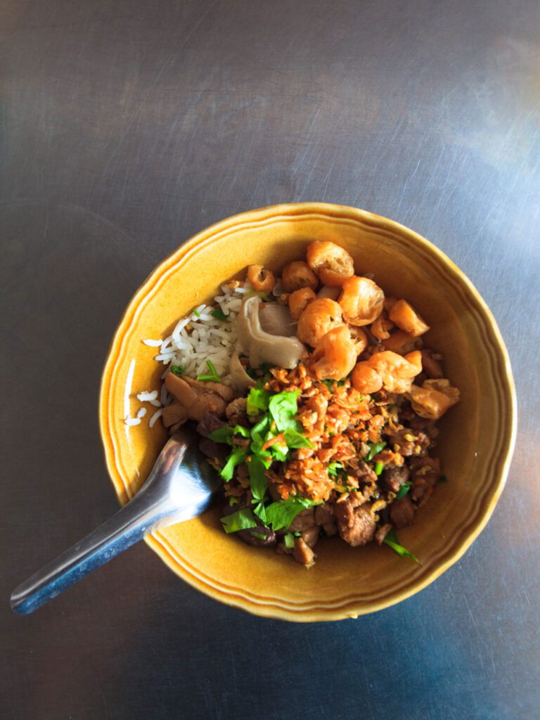 Another local specialty is khao haeng, a dry-style rice dish adapted from rice porridge. Created by orchard workers who needed a filling, energy-rich meal, the dish is prized for its rich seasoning and comforting texture. Though now known across Thailand, traditional versions are still closely associated with Maeklong.