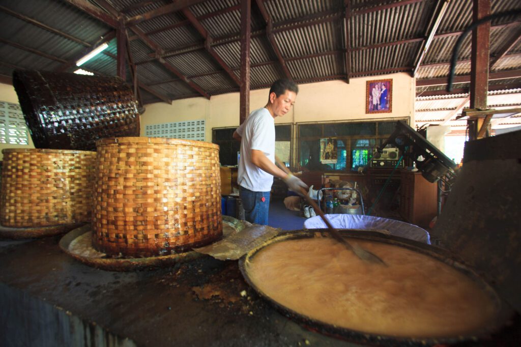 These boat journeys often include stops at coconut plantations and small workshops producing traditional coconut palm sugar. The sweet aroma of simmering coconut nectar fills the air, offering a sensory glimpse into one of Maeklong’s most important local industries.