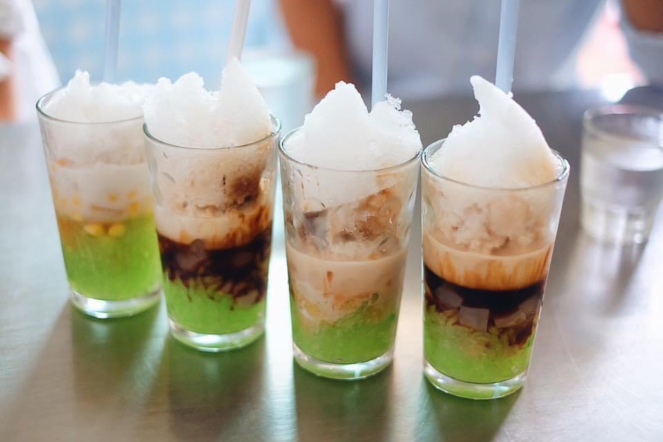 This is a popular chilled dessert among the Phet people. You can enjoy the popular Lod Chong (green molding dough made from pandan leaves) on its own or with other local sweets such as taro paste, sweetened banana and potato, and coconut jelly. All of your selections will be topped with shaved ice before being poured with a secret ingredient: condensed sugar, which is prepared by simmering palm sugar with water and coffee powder until fragrant, sweet, and rich. On a hot day, eating it is like going to heaven.