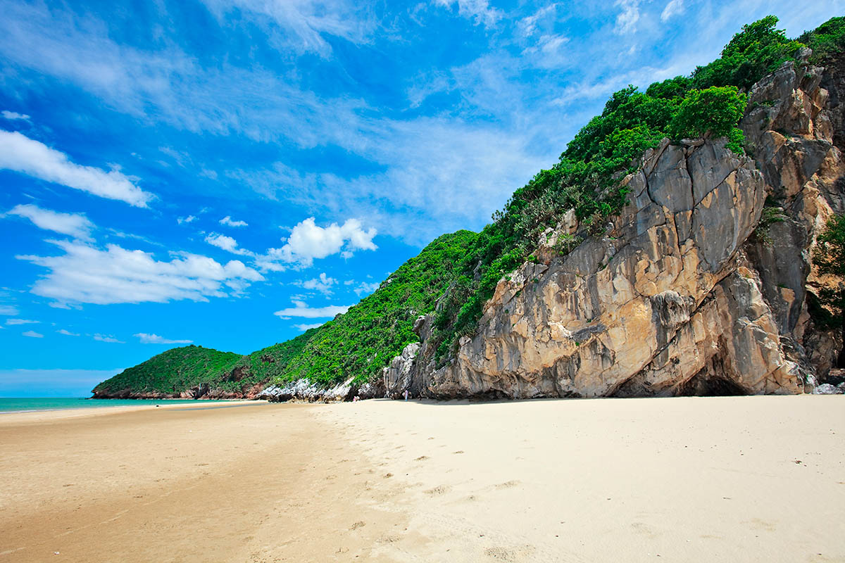 Pranburin parhaan rannan, Pak Nam Pranin, päässä kohoaa Khao Kalokn -kukkula. Sen suojista löytyy salainen ranta. Kuva: BlueOrange Studio / Shutterstock.com