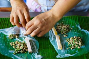 There are more than 200 weaving and dyeing villages across the province, each preserving their own methods while experimenting with new ideas. Travellers can visit workshops to learn how raw cotton becomes thread, how the dye vats are tended like living beings, and how patterns emerge through careful weaving or tie-dye techniques. Traditional indigo involves dyeing individual cotton threads before weaving, while modern studios explore ready-made garments, accessories, or contemporary patterns.