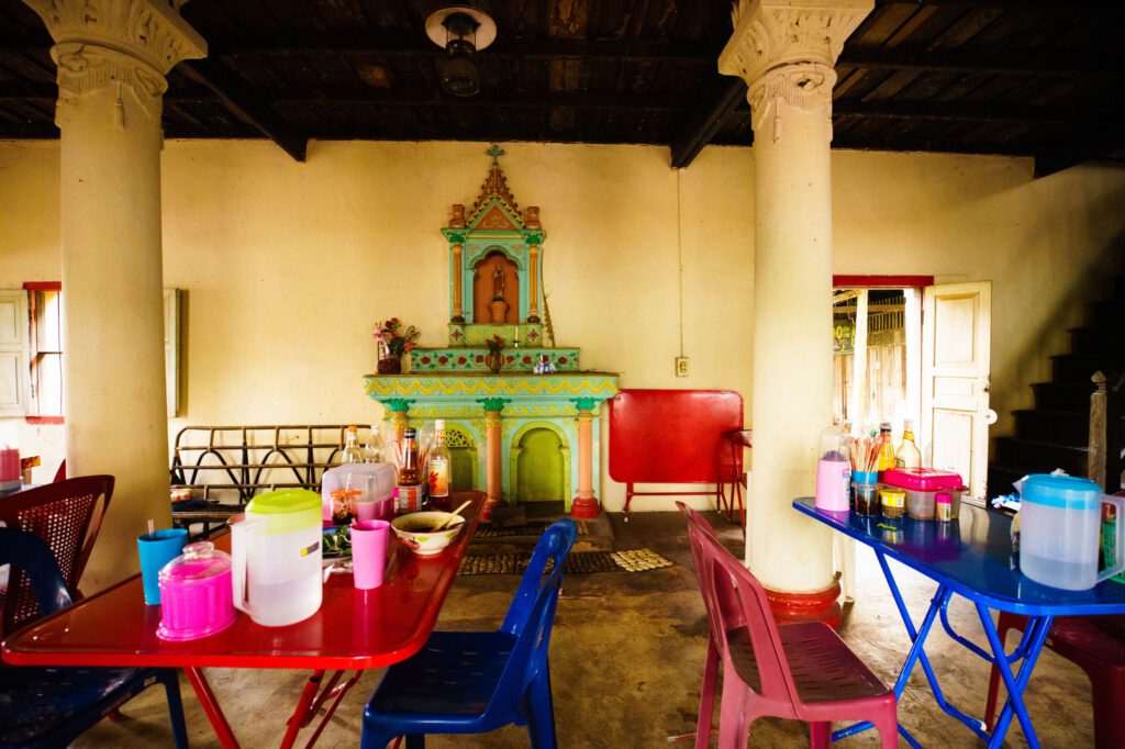 The village streets are lined with old French-inspired houses, their weathered wood and steep roofs giving the neighbourhood a nostalgic gentleness. Wandering through the lanes is like slipping into a different time. One of the most striking homes is the Francis House, once the residence of a pioneering priest. Today, the family who owns it has turned the old home into Khao Piak Boran Francisco, a charming noodle shop. Khao Piak, a soft rice-noodle soup, is comfort in a bowl—warm broth, chewy handmade noodles, and simple toppings that capture the warmth of everyday Isan cooking.