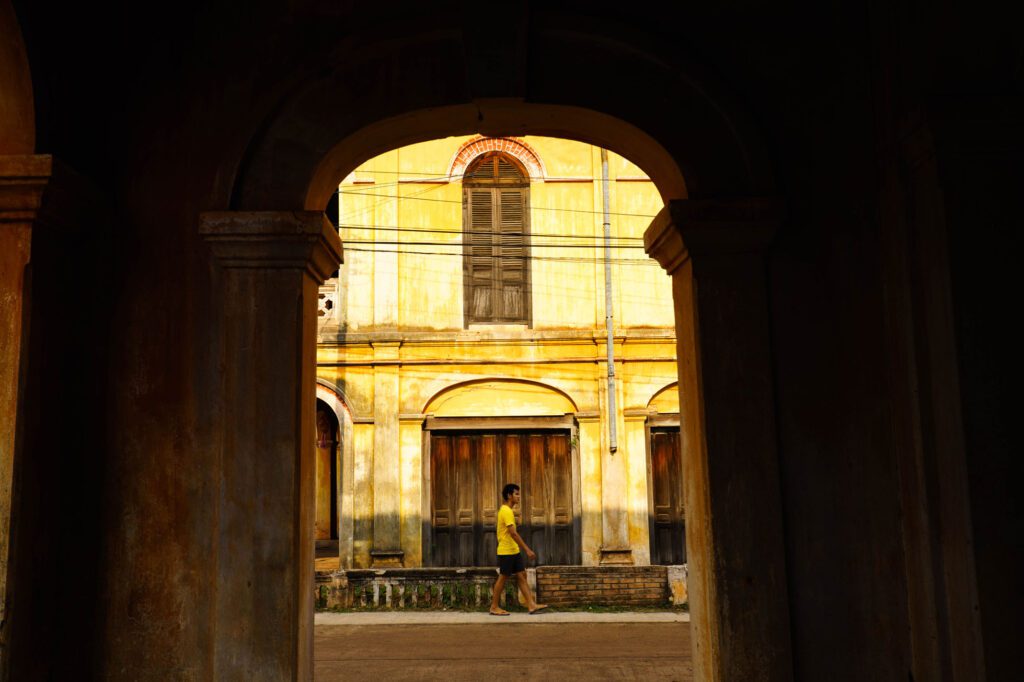 Historic French-style home turned into a traditional noodle shop, located near the cathedral.