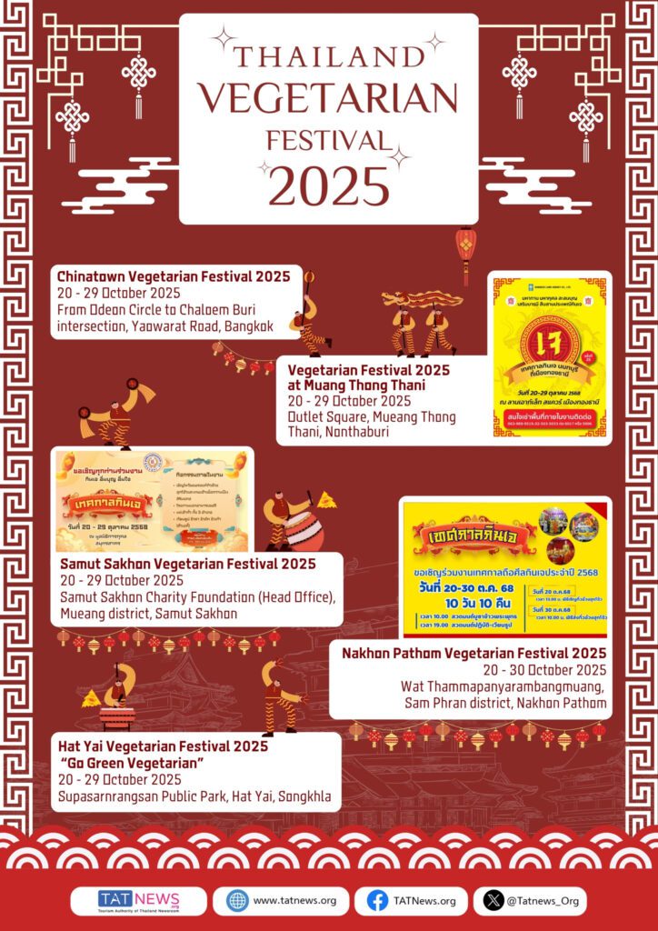 The Tourism Authority of Thailand (TAT) invites you to experience one of the nation’s most remarkable annual cultural traditions: the Thailand Vegetarian Festival 2025, running from October 20–29, 2025.